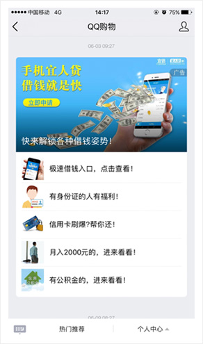 作为主动型效果广告,广点通能有效实现更加智能的广告匹配和高效的广告资源利用。并利用专业数据处理算法实现成本可控、效益可观、精准定位的效果广告投放系统。