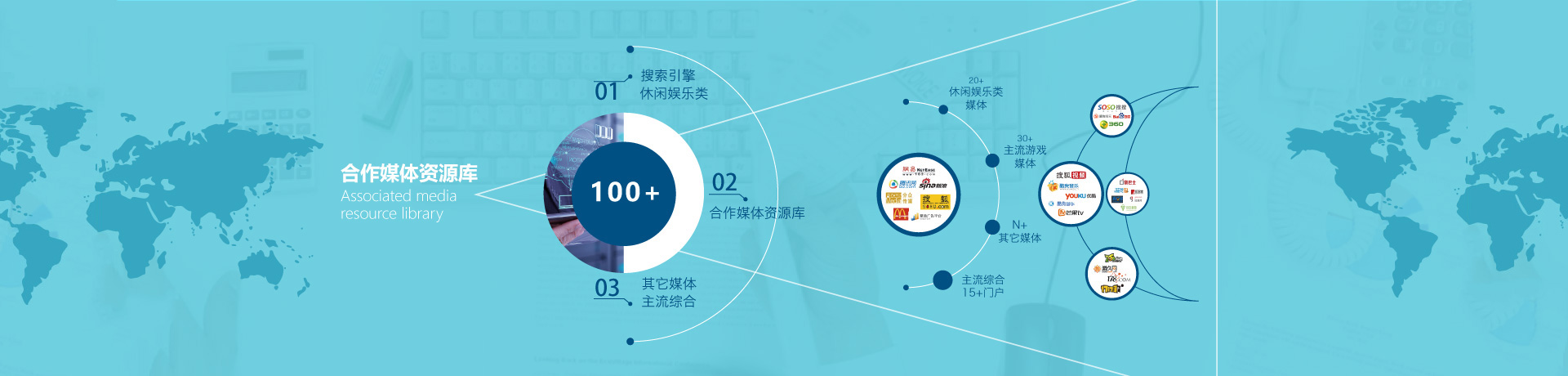 垂直流量丰富的媒体数据库,涵盖游戏、搜索、移动、娱乐等各个行业媒体,直达客户中心用户群。